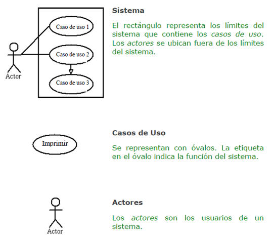actores y casos de uso. Los casos de uso son servicios o funciones